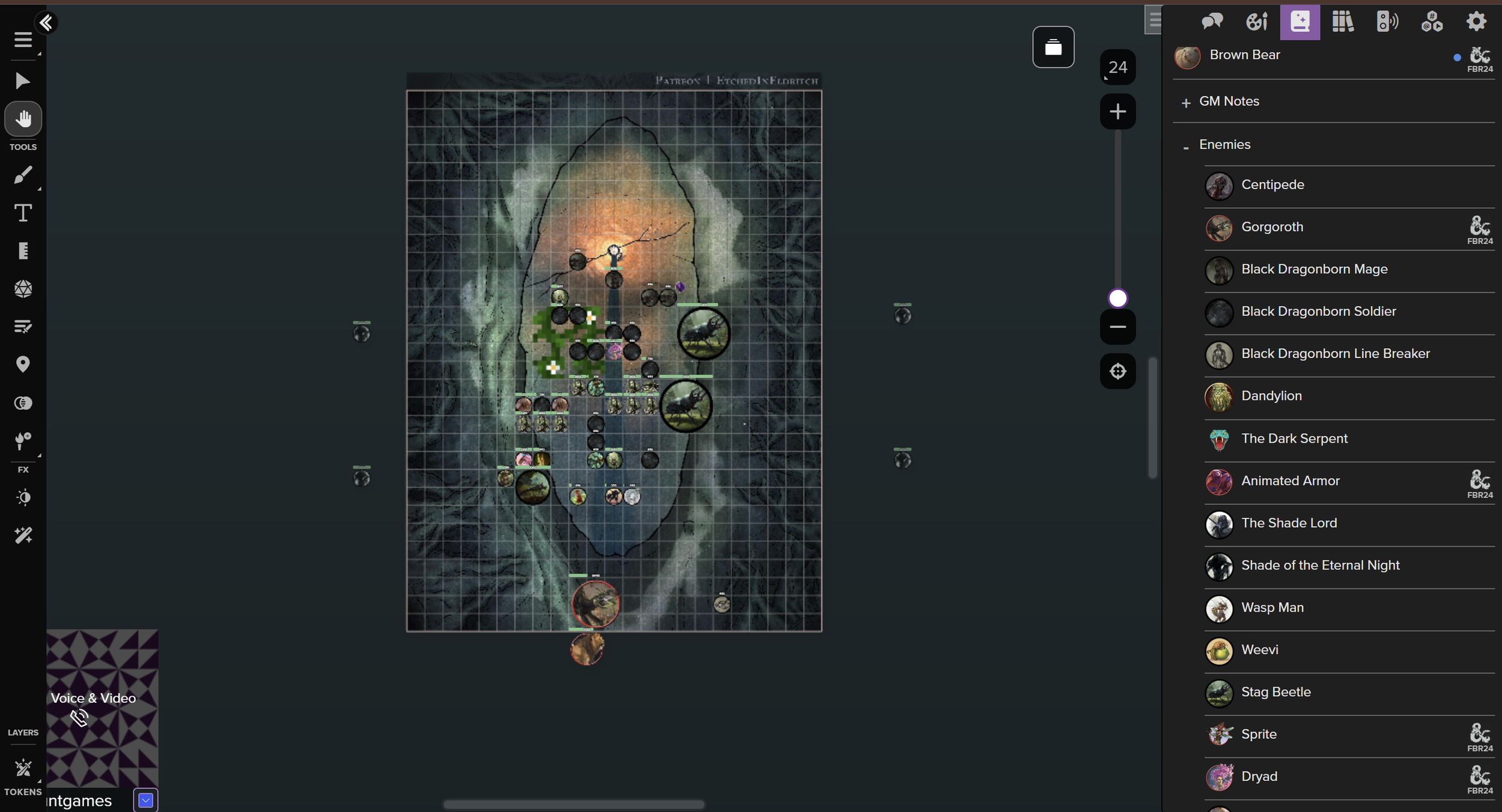 I run online Dungeons and Dragons sessions using the website Roll20. I have run four adventures set in The Central Lands following two groups of adventurers with another campaign in development. These campaigns feature homemade monsters, races, classes and mechanics(the latest featuring content developed by me almost exclusively). These are multi-month projects requiring hours of prep time and careful design to ensure the best possible experience for my players. Below are some examples of custom enemy statblocks I have created for my latest campaign, Into the Heart of Darkness. A story set in a tiny scale following the journey of seven miniature adventures in their journey to save the forest from a growing darkness.